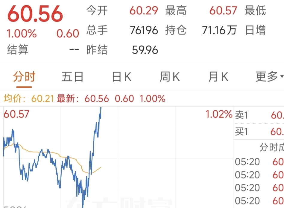 最新布伦特国际油价飙升1%了