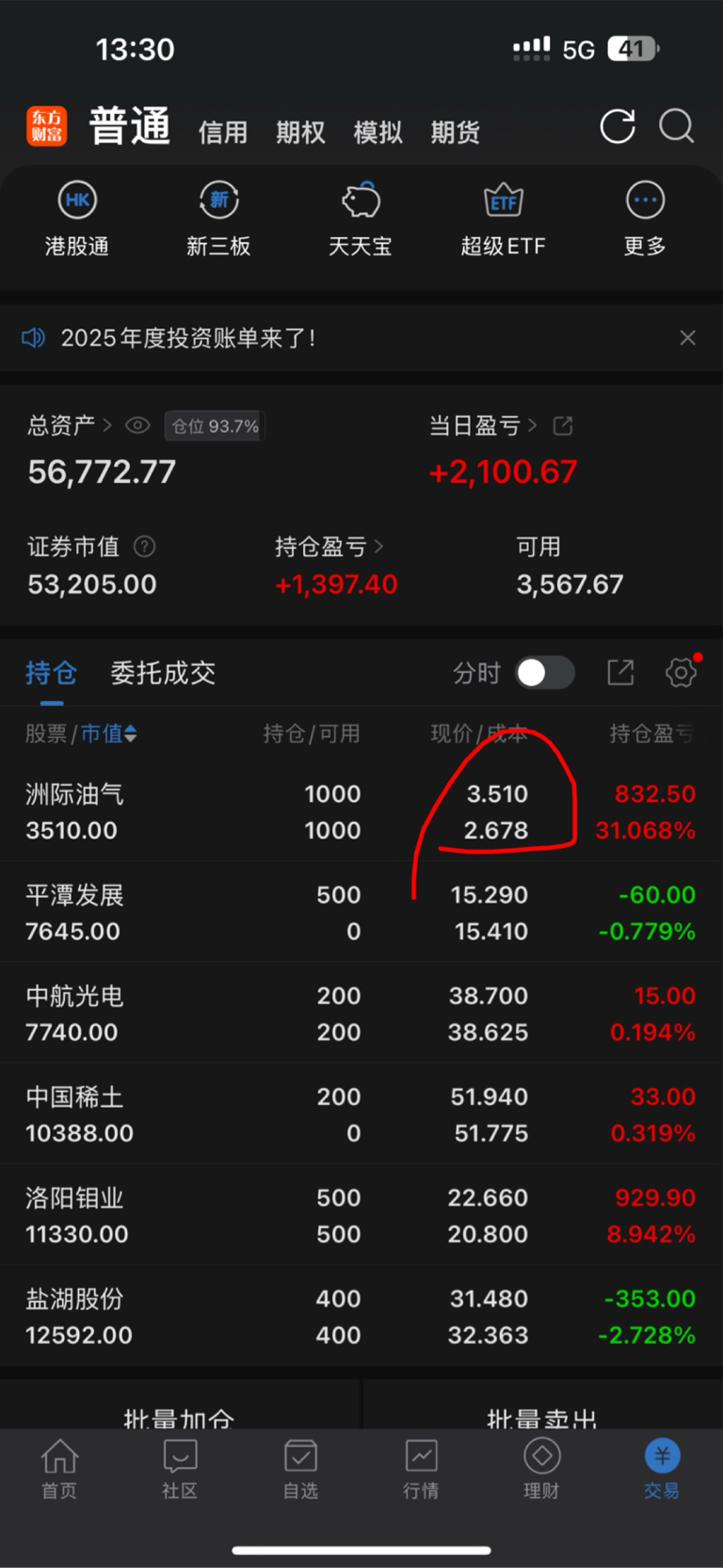 $洲际油气(SH600759)$ 3.4买的,卖了4000股之后,成本怎么给我搞成2.6了?