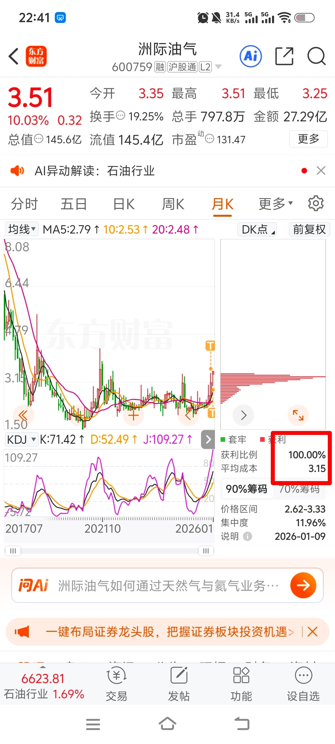 $洲际油气(SH600759)$ 目前三线平均成本3.15,公司2.5元/股回购1.2亿元,年前应该会拉到4.5左右。
