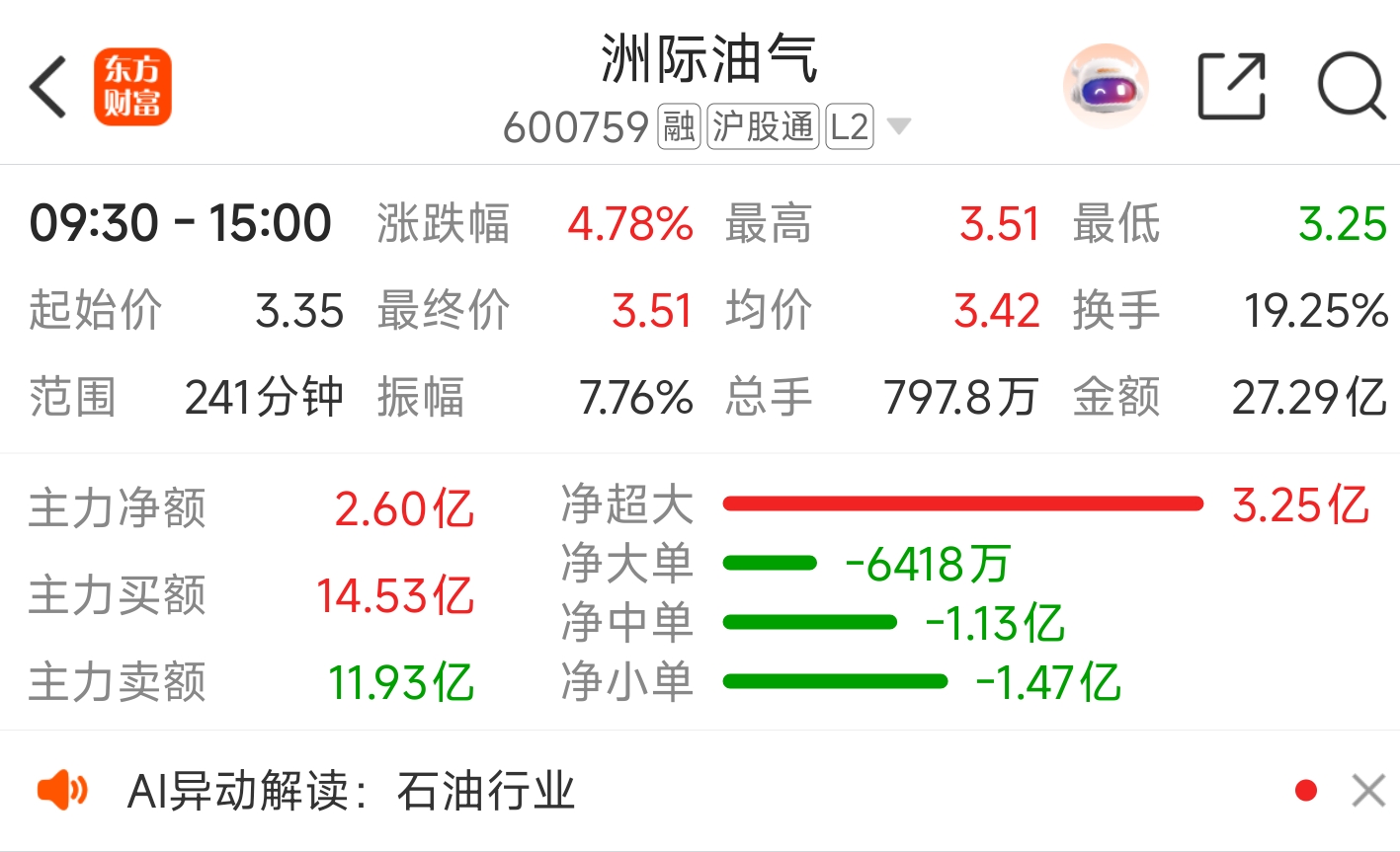 $洲际油气(SH600759)$ 这是洗出去多少散户