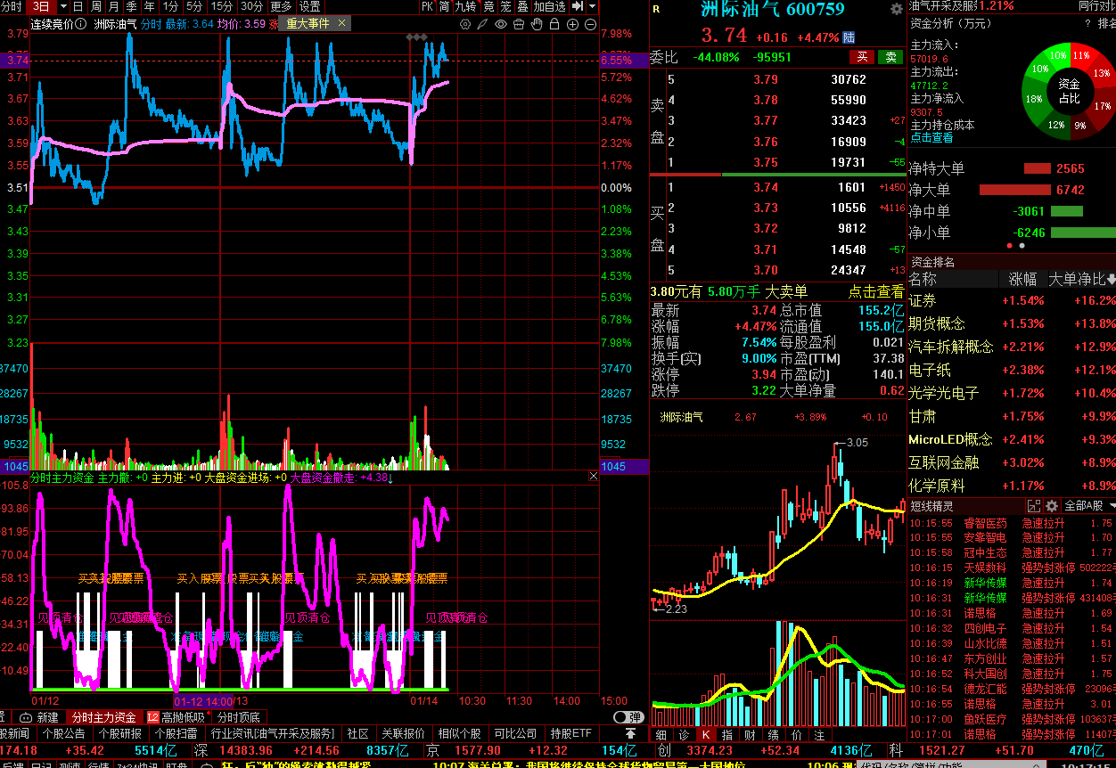 假如你不掌握它 你就得被他们玩弄于鼓掌之中的 洲际油气:这是一群玩日线内高抛低吸的投机分子在反复操作,他们是运用分时大单资金走向的老手