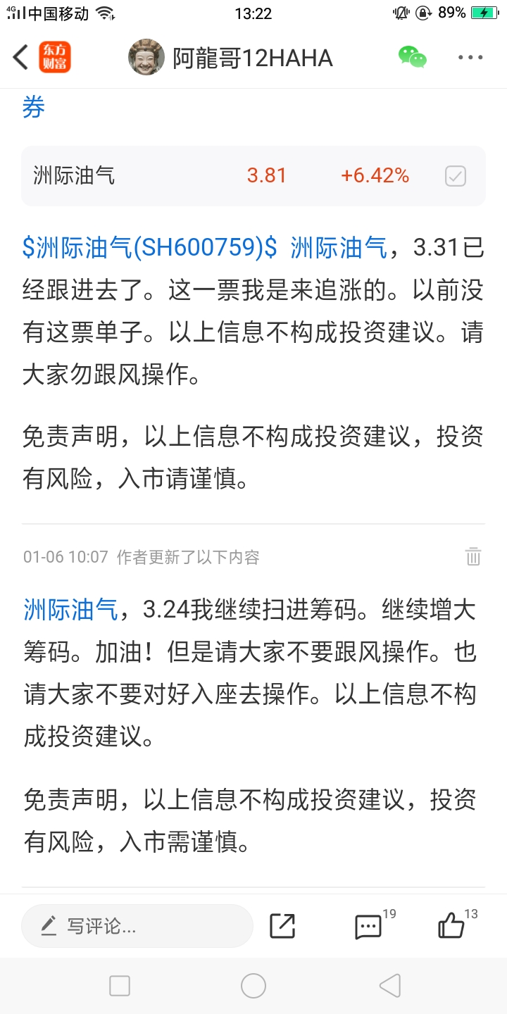 $洲际油气(SH600759)$ 洲际油气,刚才主力拉升到3.88,然后主力交换筹码了。主力出了一些单子,然后让点位回落,继续在进单,主力还要继续拉升的。主力在交换筹码,降低均价。这是主力操盘手最起码的准则操作。以上信息不构成投资建议,请勿跟风操作,也不要对号入座去操作。