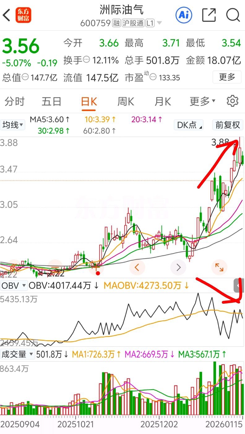 $洲际油气(SH600759)$ OBV指标已经顶背离,大家快跑,不要犹豫
