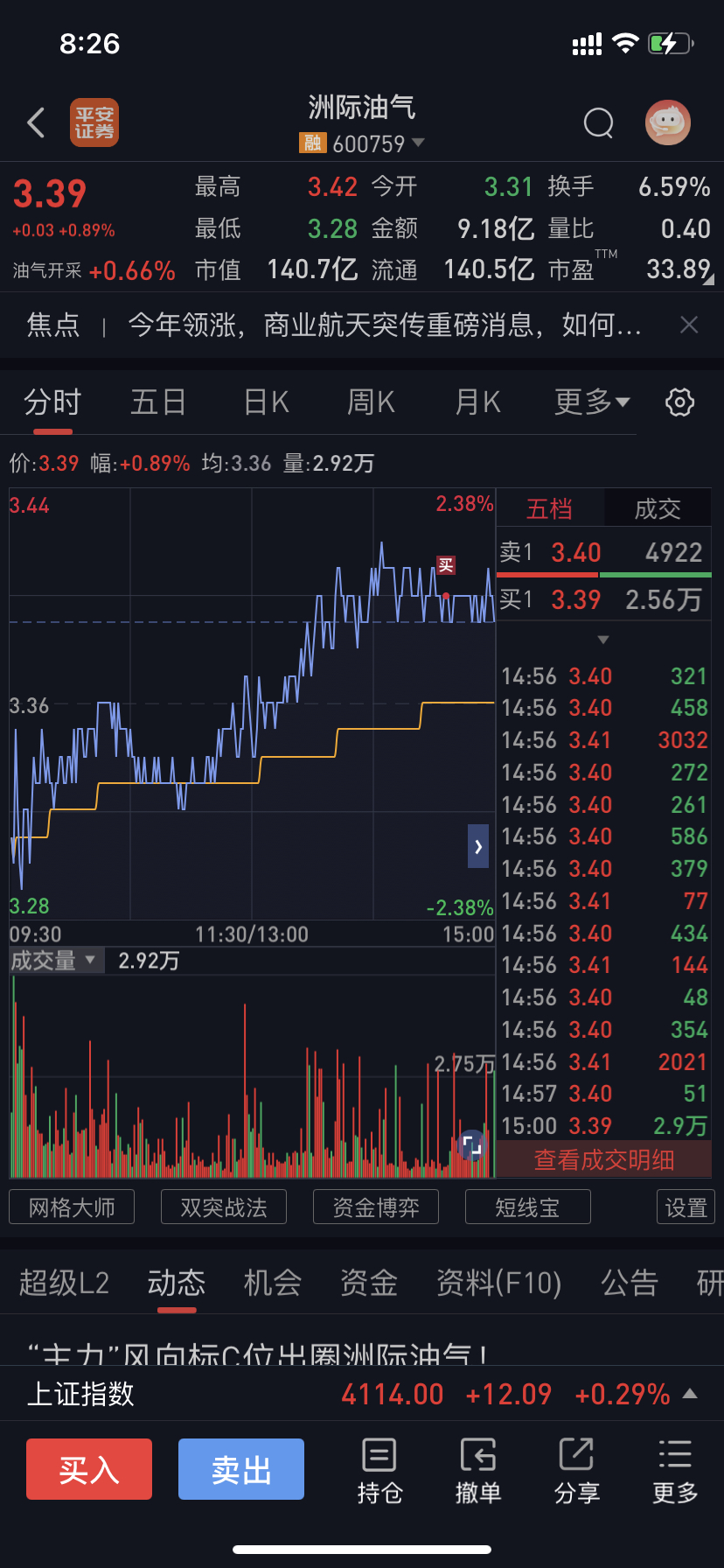 $洲际油气(SH600759)$ 早上低开没敢加仓!下午想想缩量就又加点!不知道明天是上天还是入地!尽力看主力了!