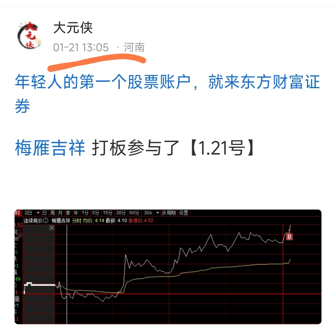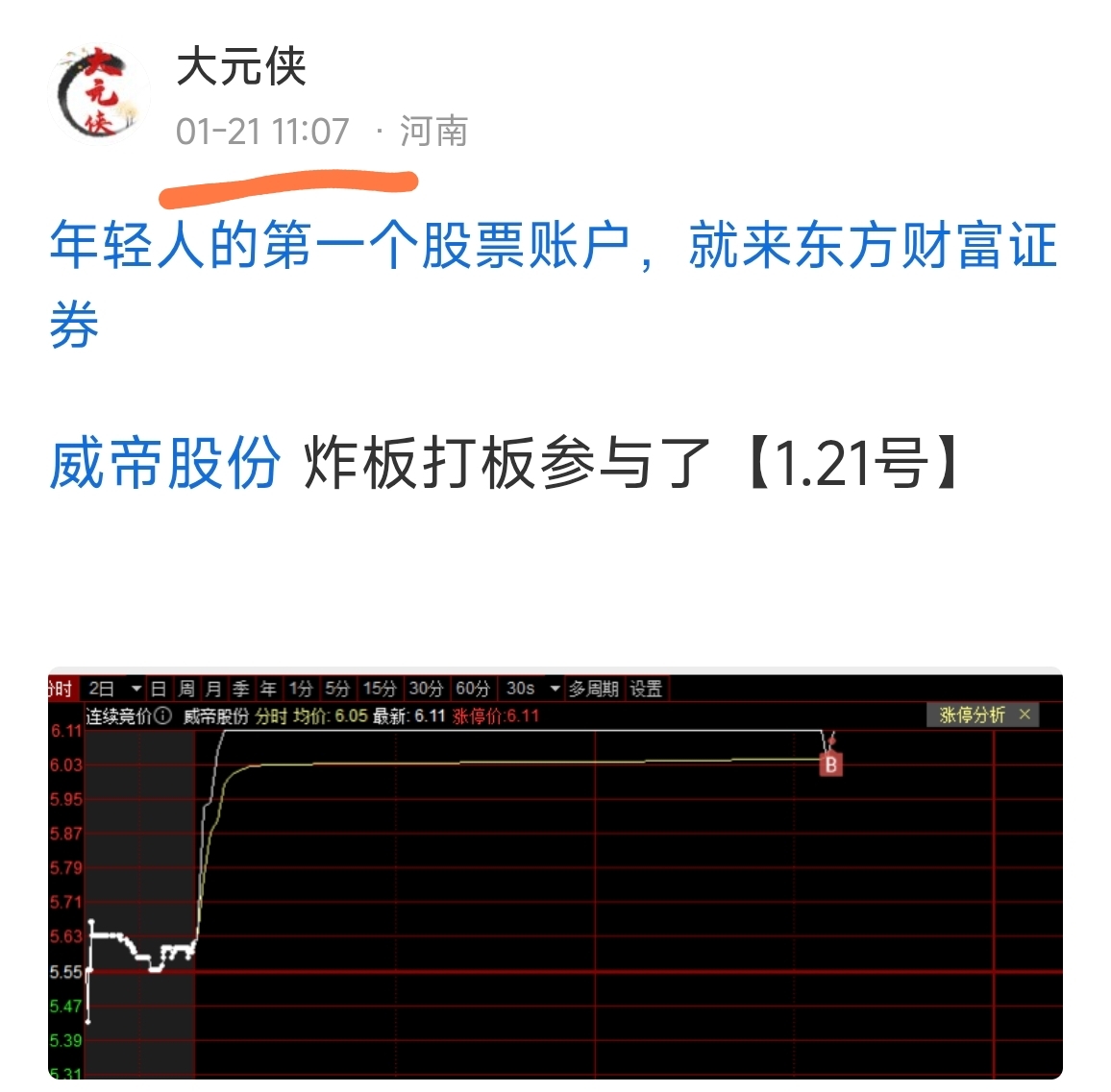 温馨提示: 1.根据《证券法》规定,禁止编造、传播虚假信息或者误导性信息,扰乱证券市场;2.用户在本社区发表的所有资料、言论等仅代表个人观点,与本网站立场无关,不对您构成任何投资建议。用户应基于自己的独立判断,自行决定证券投资并承担相应风险。《东方财富社区管理规定》