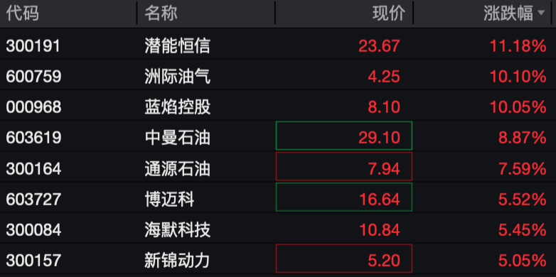 板块异动 | A股油气板块活跃 洲际油气涨停