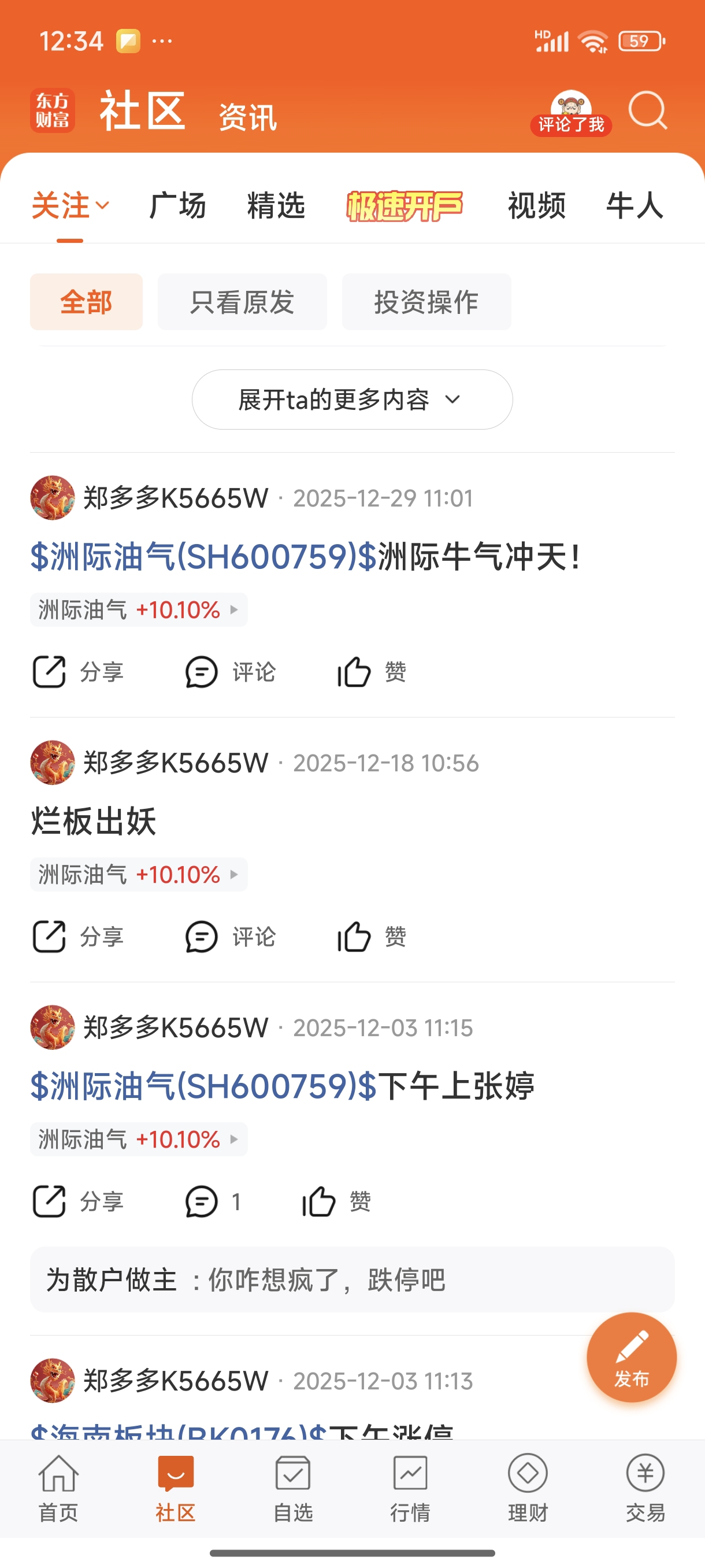 温馨提示: 1.根据《证券法》规定,禁止编造、传播虚假信息或者误导性信息,扰乱证券市场;2.用户在本社区发表的所有资料、言论等仅代表个人观点,与本网站立场无关,不对您构成任何投资建议。用户应基于自己的独立判断,自行决定证券投资并承担相应风险。《东方财富社区管理规定》