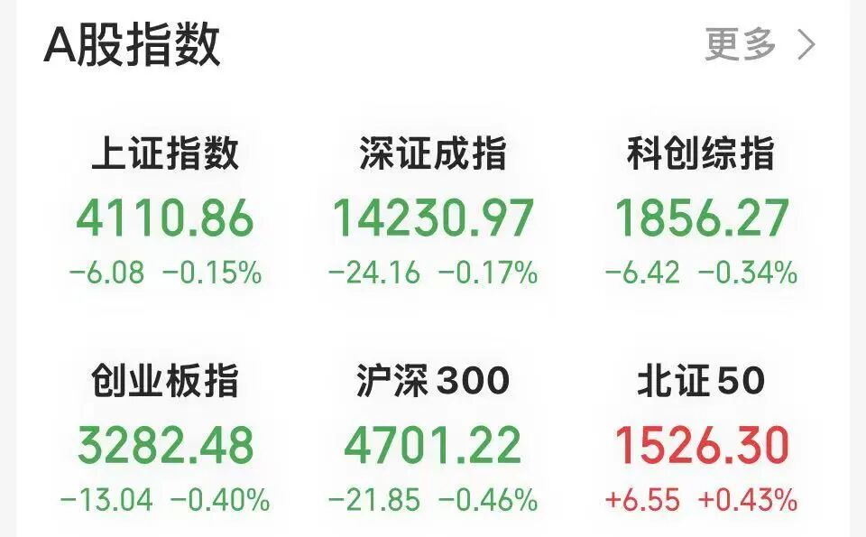今日早盘,A股市场窄幅盘整,贵金属、半导体等热门题材出现回调,带动主要股指走弱。截至午间休市,上证指数报4110.86点,跌0.15%;深证成指跌0.17%,创业板指跌0.40%,科创综指跌0.34%。A股油气板块早盘领涨,万亿元市值巨头中国海油涨超4%。