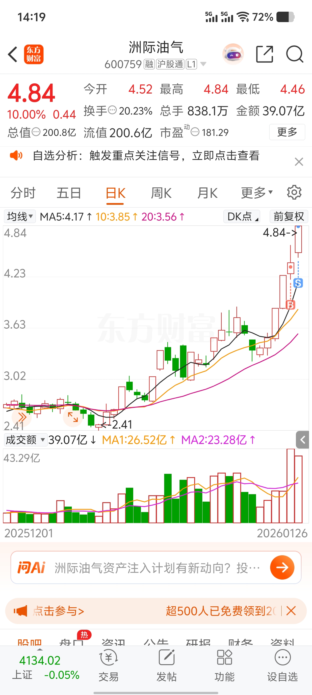 $洲际油气(SH600759)$ 2天拿到11个点,知足了