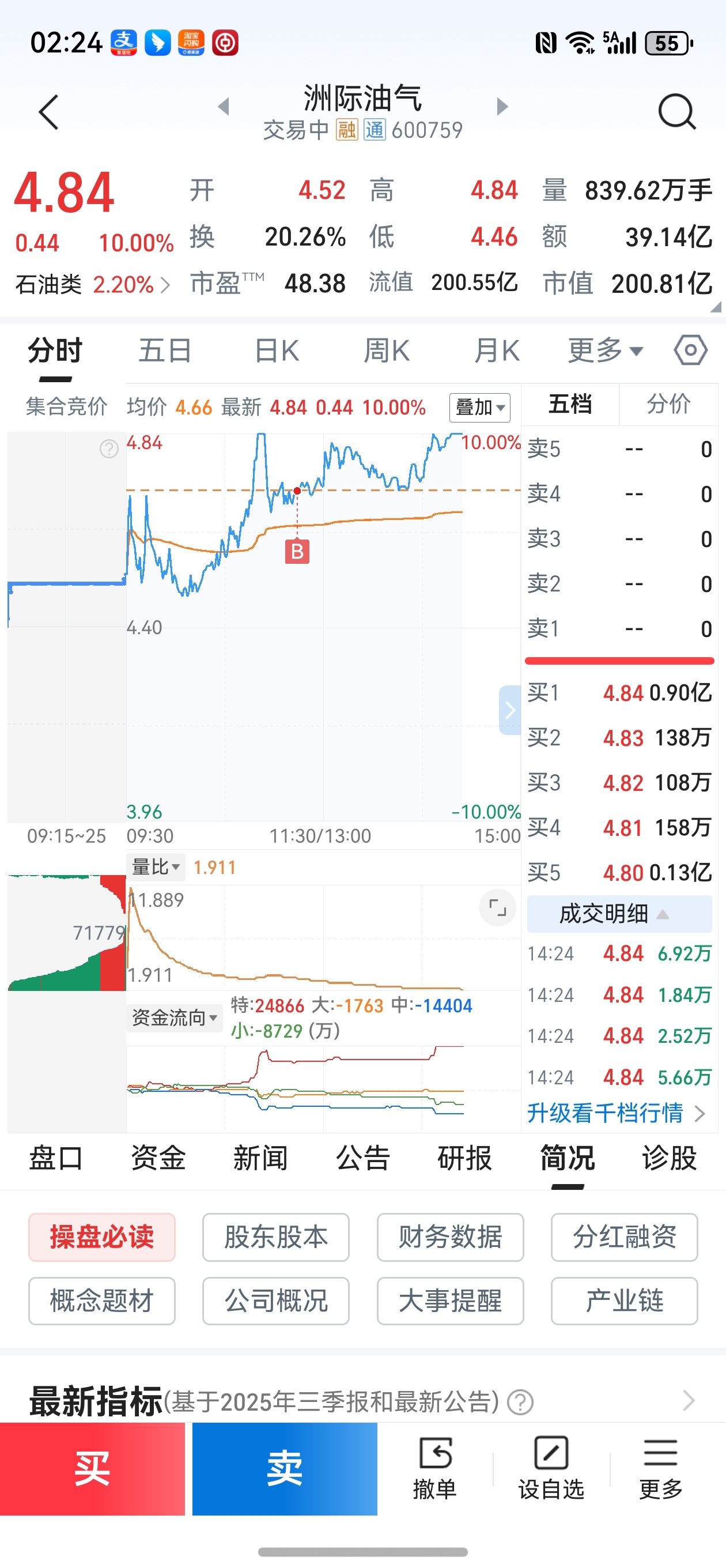 $洲际油气(SH600759)$ 不知道明天还有没有机会涨停呢
