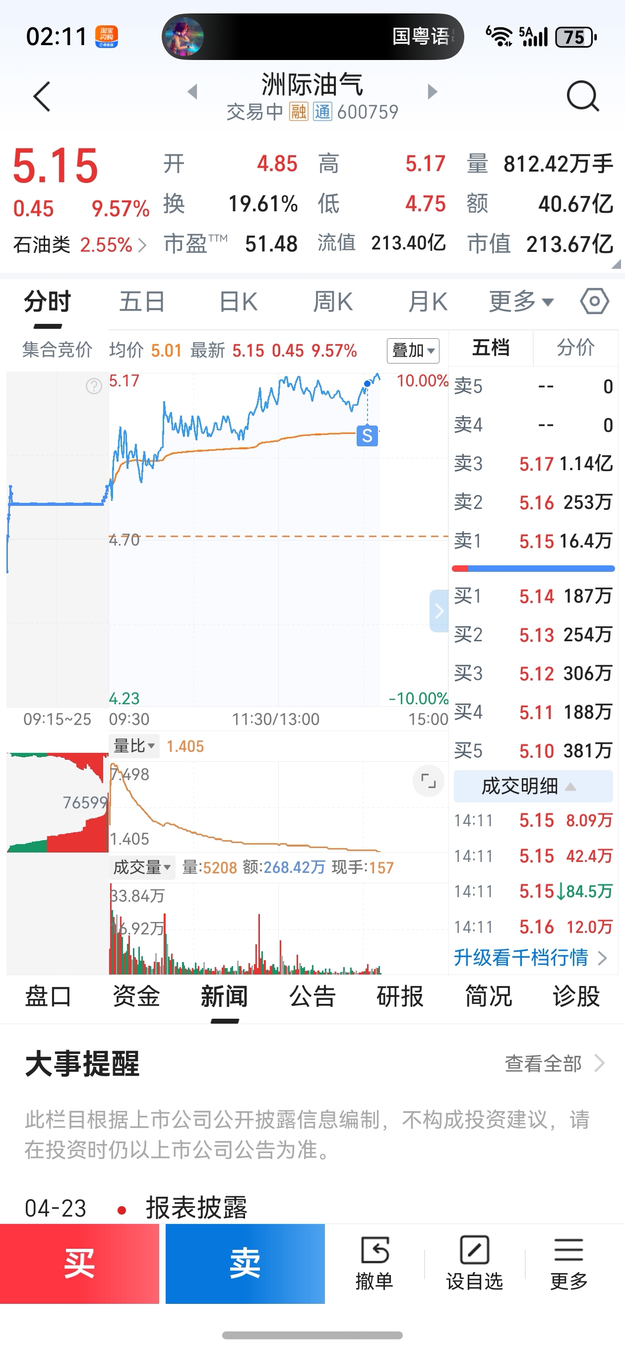 $洲际油气(SH600759)$ 跑路,落袋为安