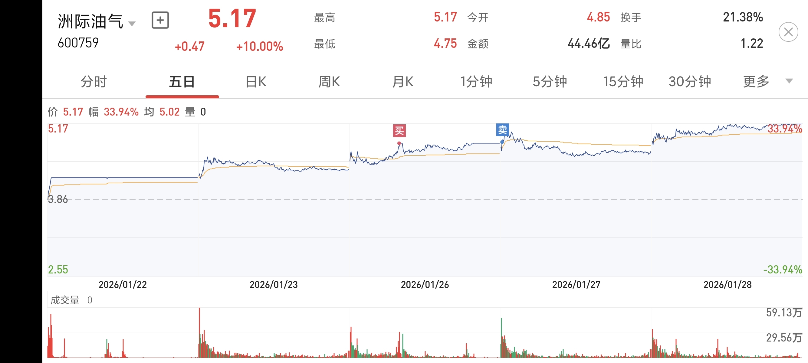 $洲际油气(SH600759)$ 666,我一走就涨停是吧?