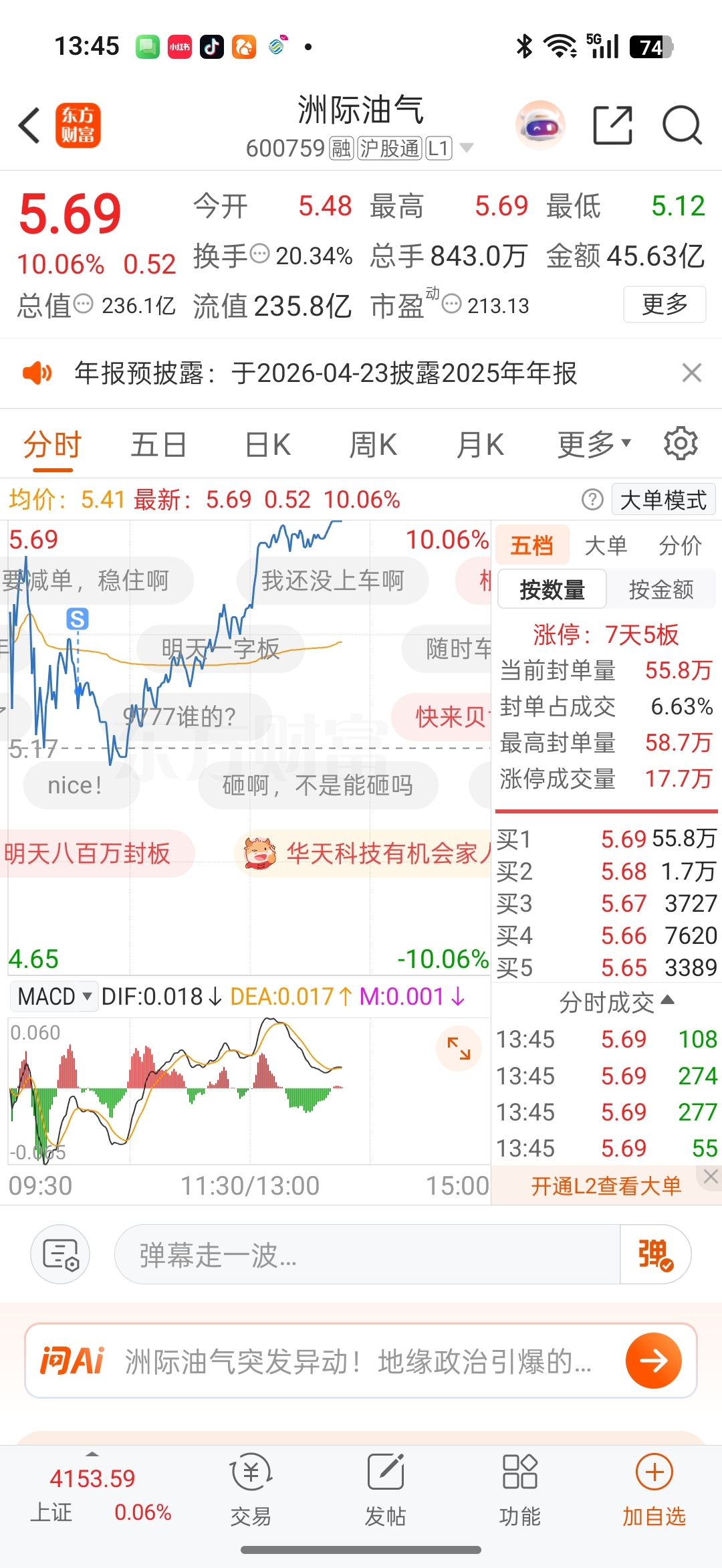 $洲际油气(SH600759)$ 拿不住,老是卖飞