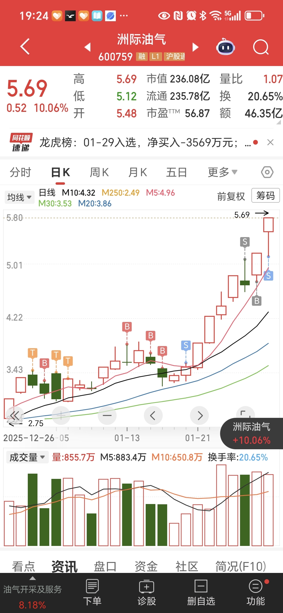 $洲际油气(SH600759)$ 留下的发财,明天看情况,追涨还是观望