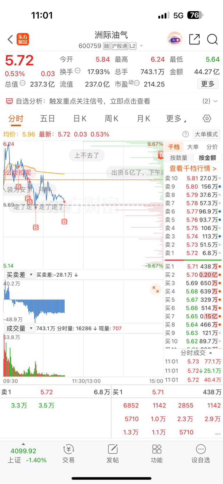$洲际油气(SH600759)$ 满仓了,听天由命