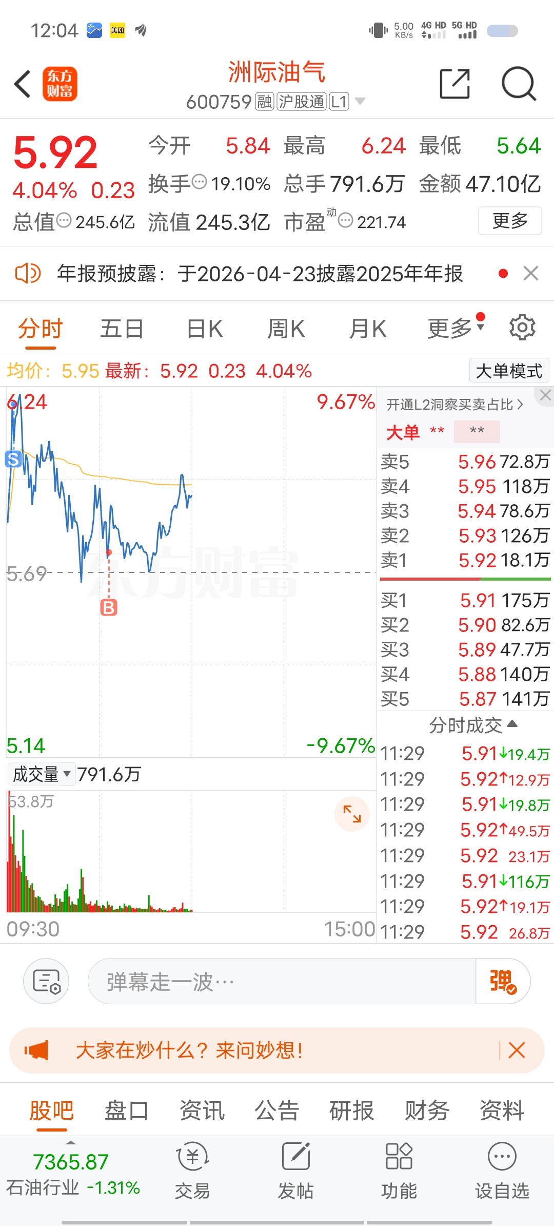 $洲际油气(SH600759)$ 怕高的人,命苦啊。