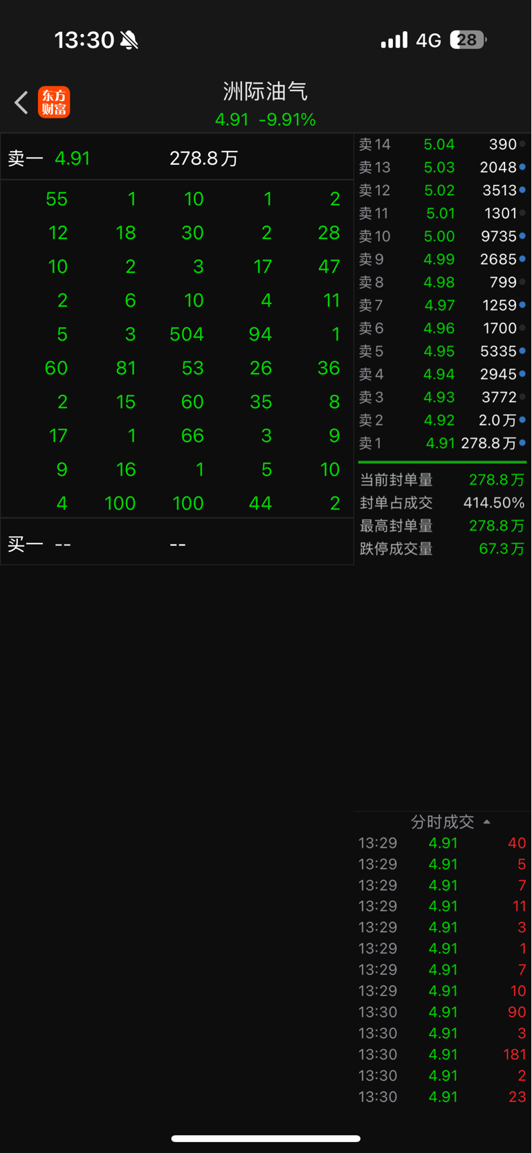 $洲际油气(SH600759)$ 从盘口看主力卖完了,现在属于散户相互踩踏封单