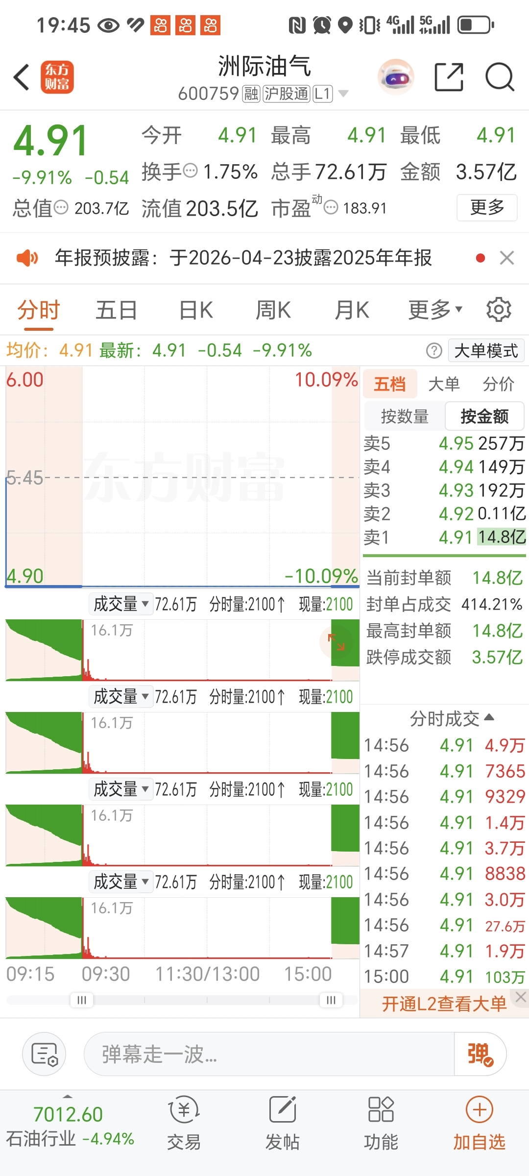 $洲际油气(SH600759)$ 这都能有15个亿的卖盘真牛批了