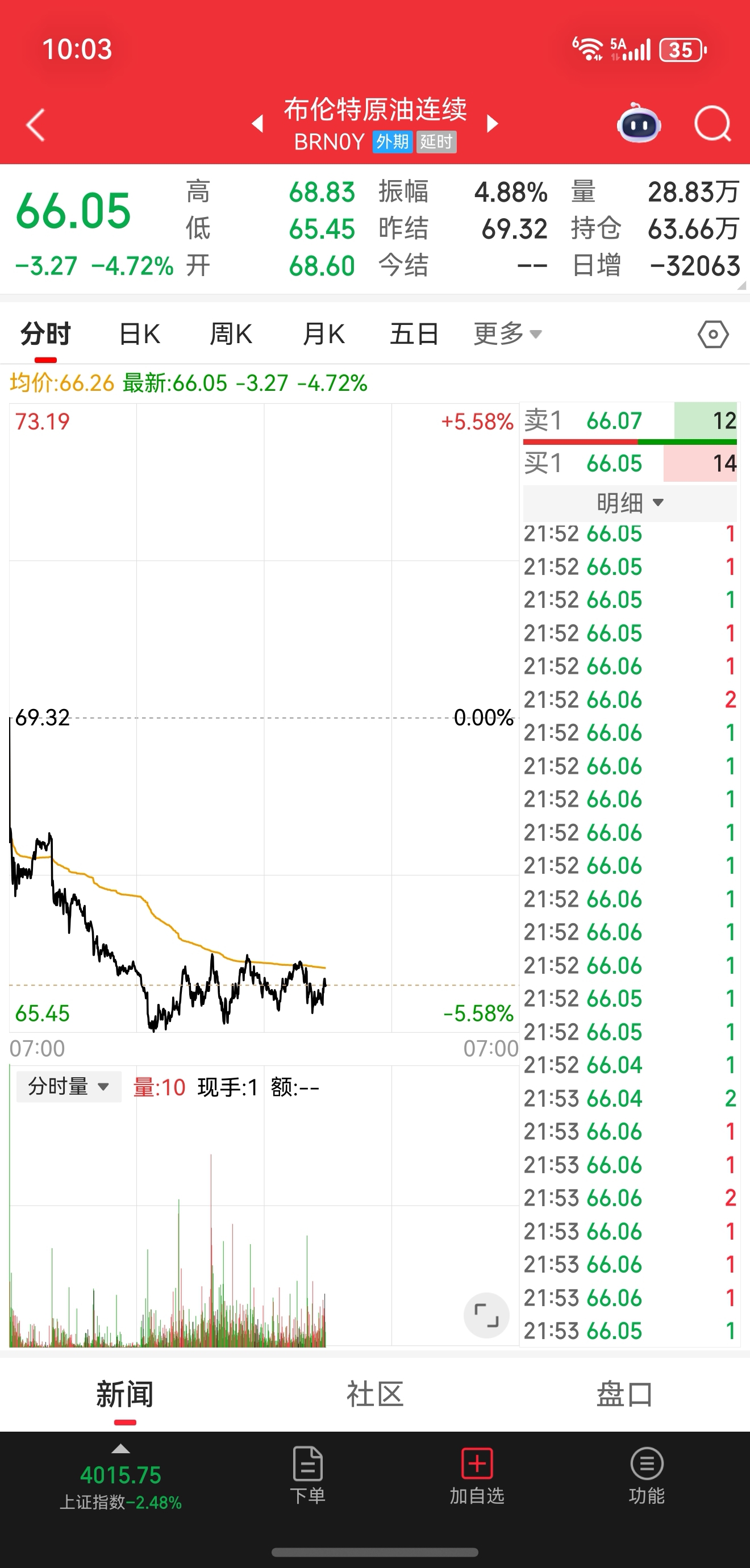 $洲际油气(SH600759)$ 完了,原油晚上跌爆了