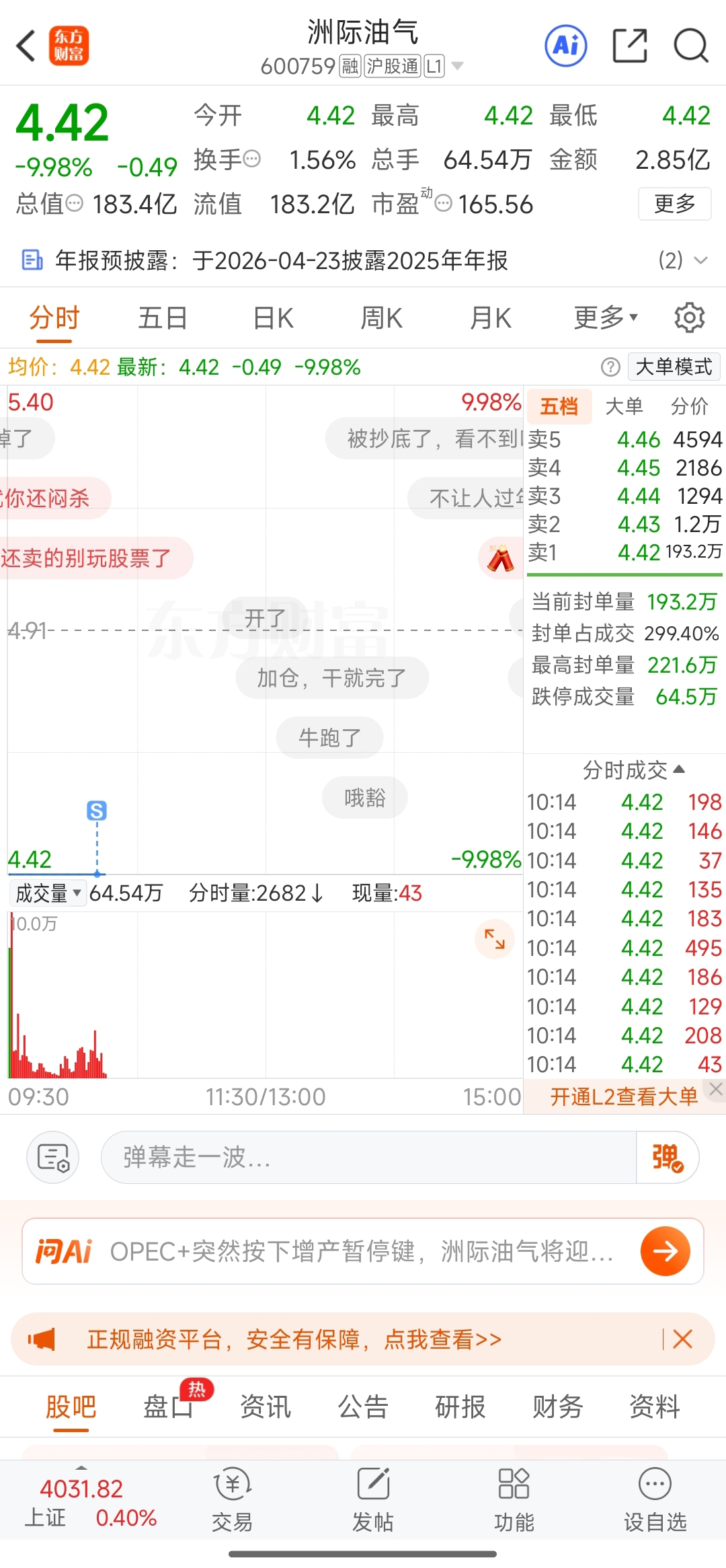 $洲际油气(SH600759)$ 吃了2个跌停,庆幸的是今天让我卖出了