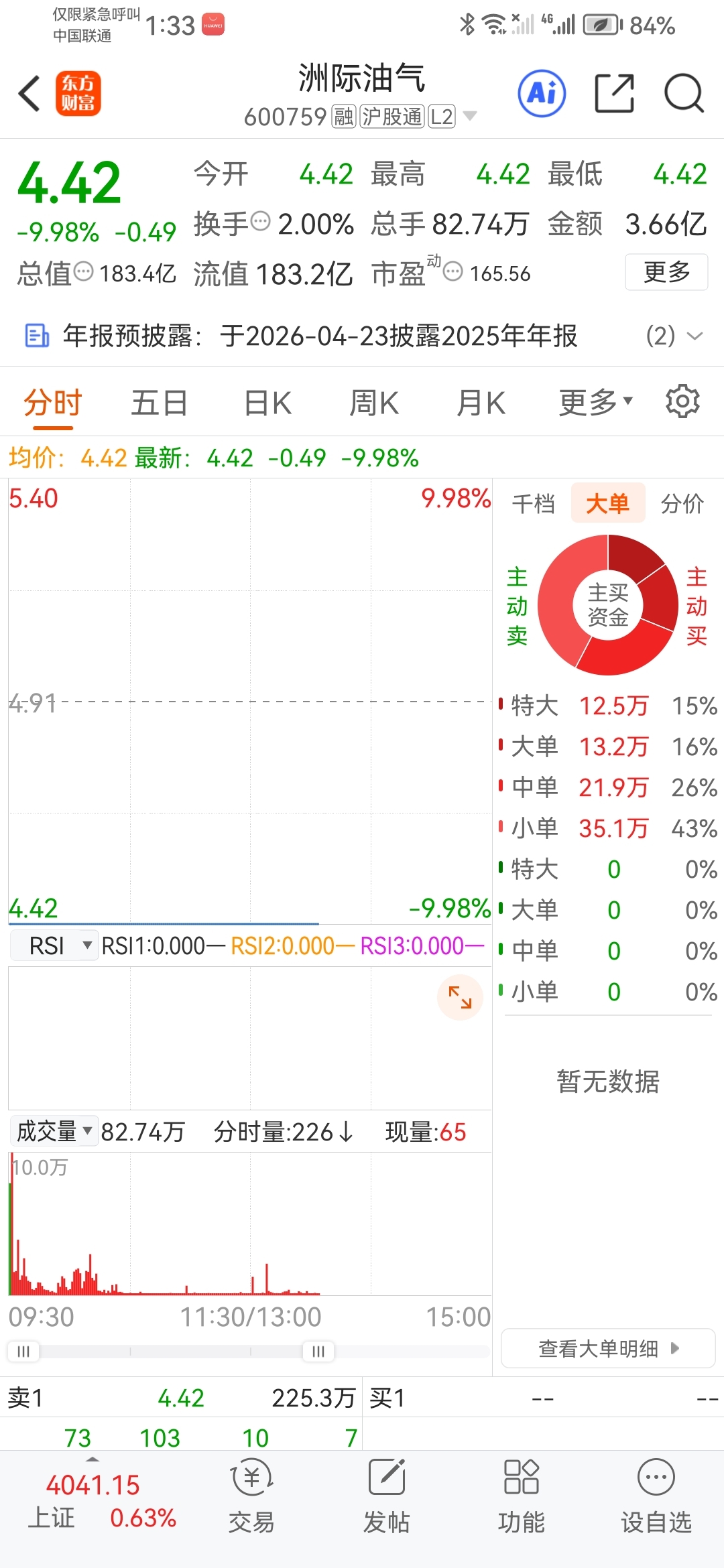 $洲际油气(SH600759)$ 都是散户在卖,大单一个没有,不知道都是咋想的