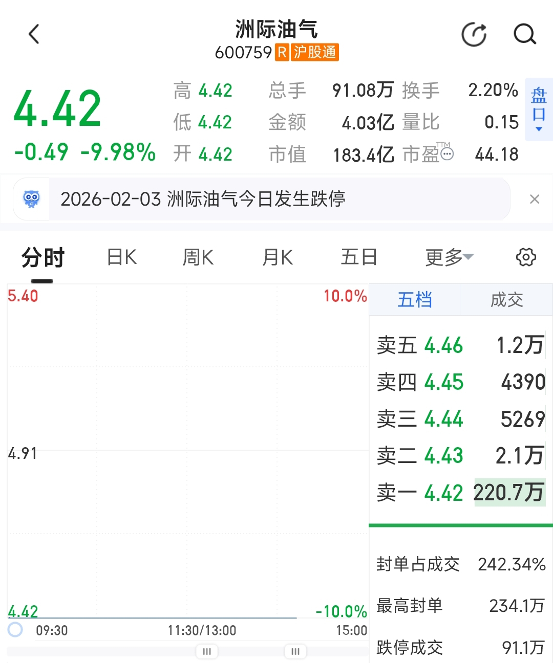 到现在跌停成交了91万手,明天我主动买套。