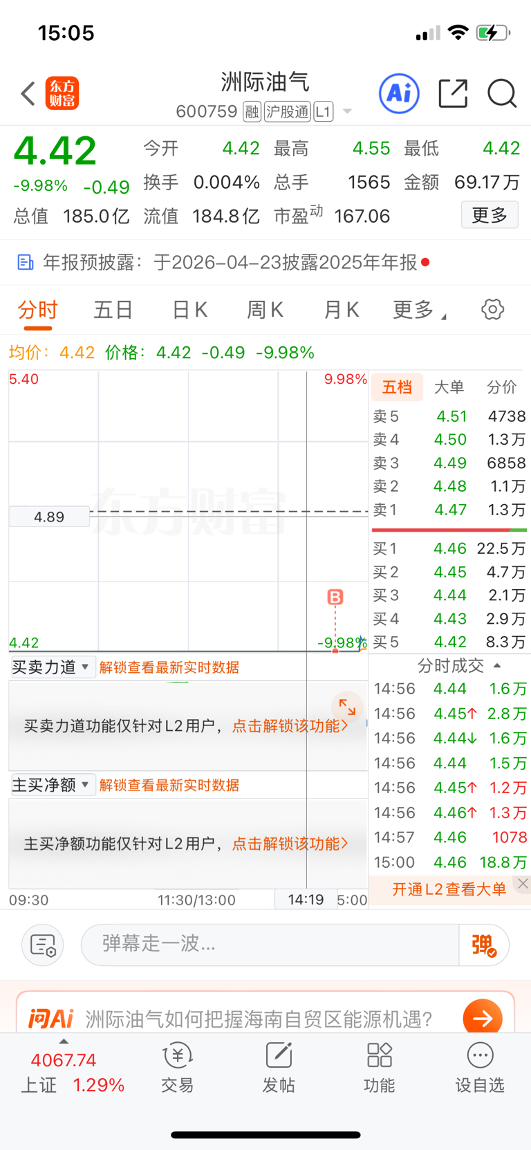 $洲际油气(SH600759)$ 有点不对劲,尾盘才开盘?我前面那里一直几千手,万手,诱惑我了也进来了,56分钟财开板?