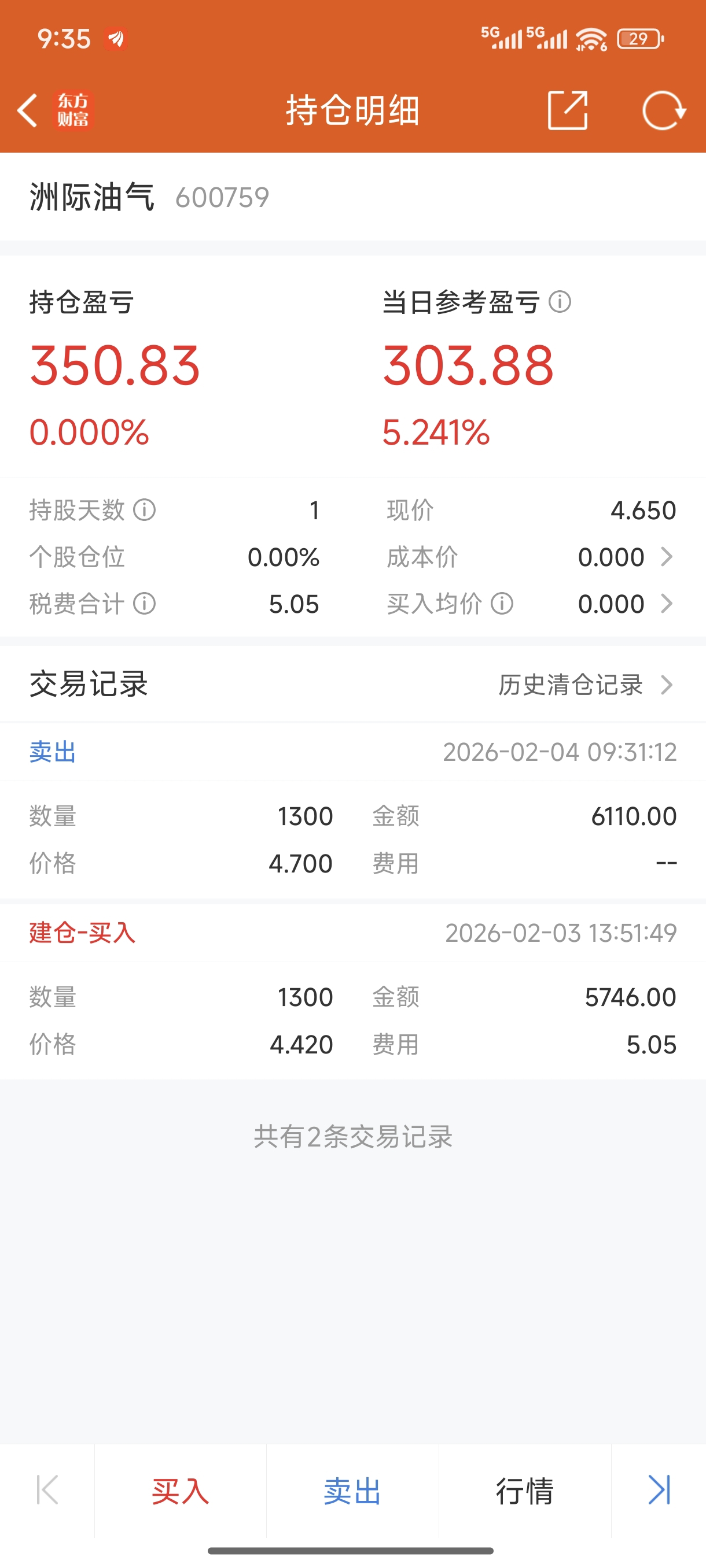 $洲际油气(SH600759)$ 昨天买了点,不贪心,开盘全卖了,祝留下的继续发财。