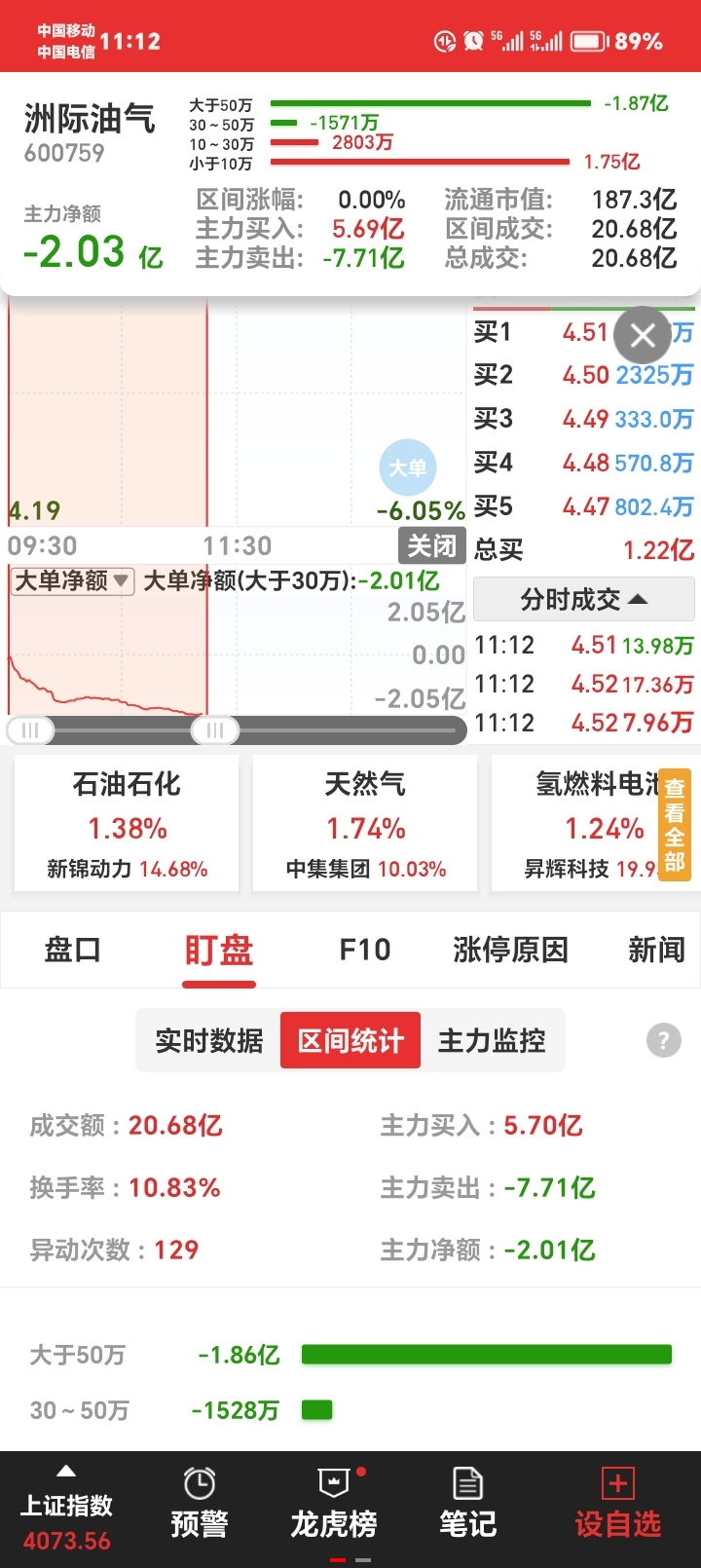 $洲际油气(SH600759)$ 主力一直在跑,下午搞不好又要跌停