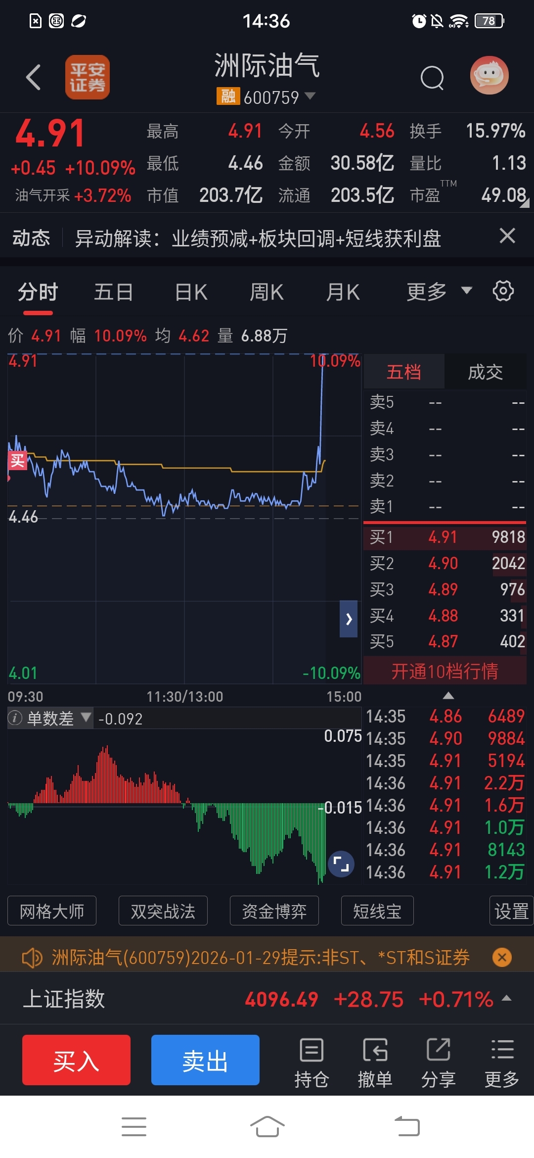 $洲际油气(SH600759)$ 今天的第一涨停,虽迟但到