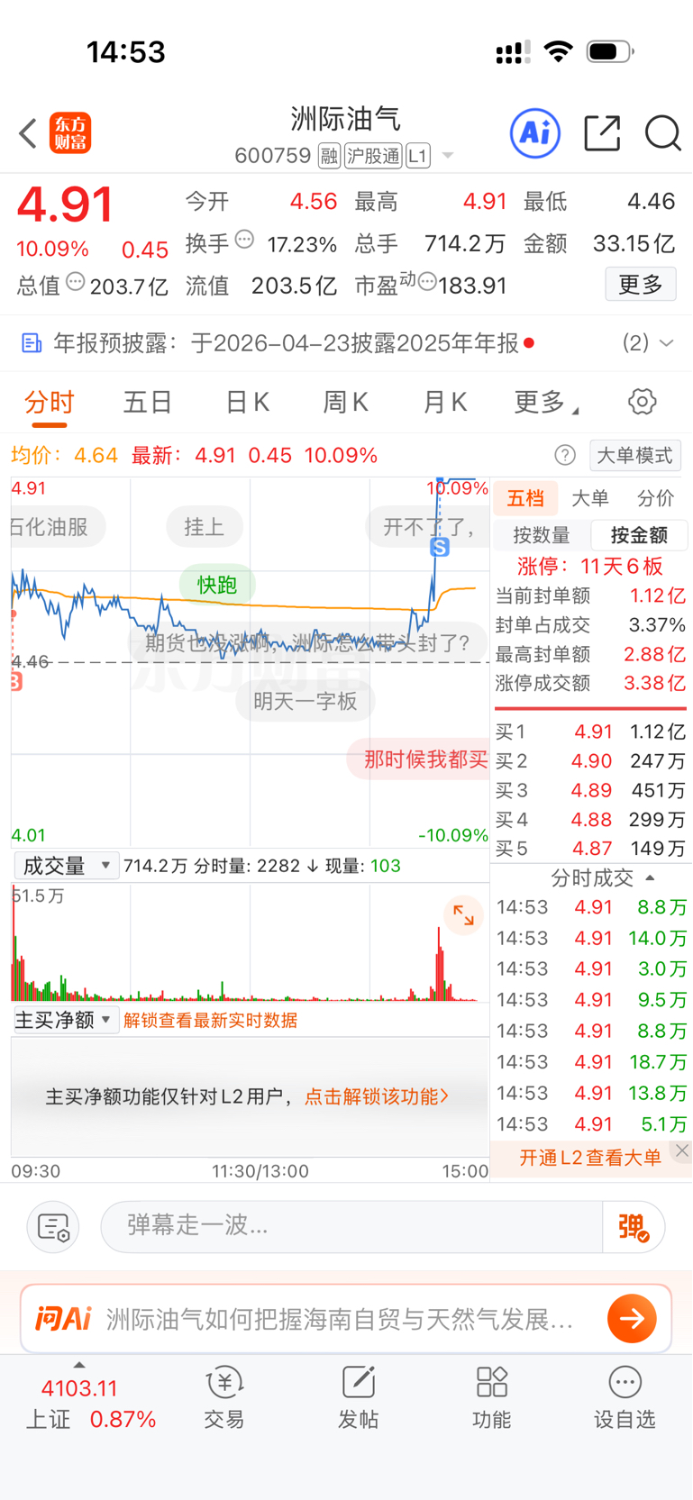 $洲际油气(SH600759)$ 今天中午刷抖y,还有评论区,都是唱空的,说主力出货的。其实就一件事,如果我们都能揣测主力的想法,我们早就股神了!最后恭喜还在坚持的朋友们,希望明天继续吃肉
