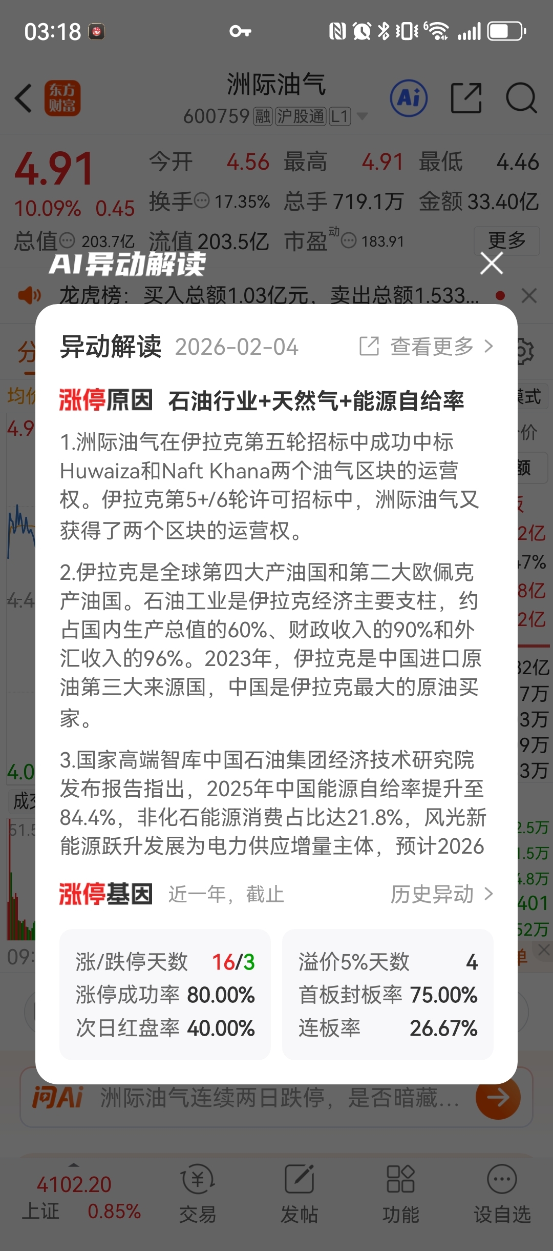 $洲际油气(SH600759)$ 涨停是因为中标伊拉克两块油田的运营权