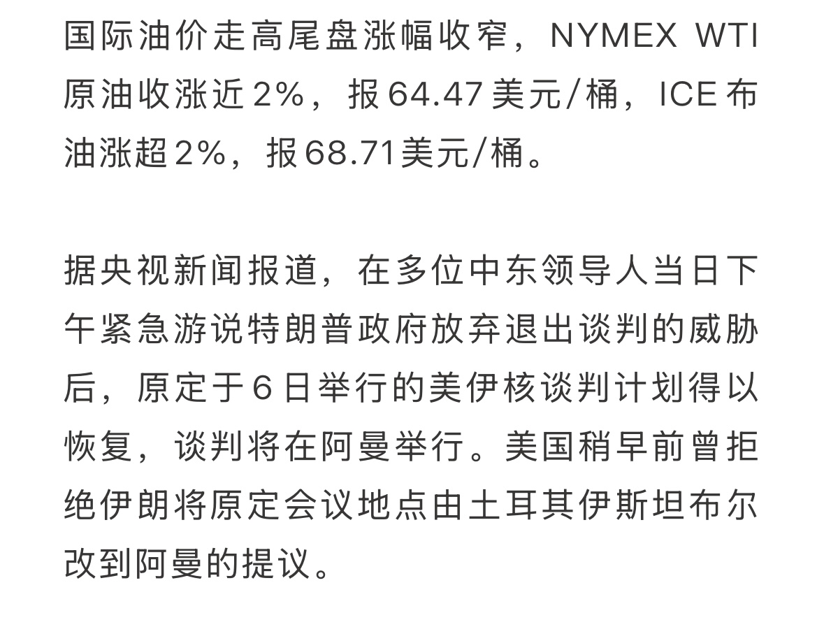 $洲际油气(SH600759)$ 谈判取消又恢复,大概率不会战争了,和平居多,原油今天可能涨,明天肯定跌了