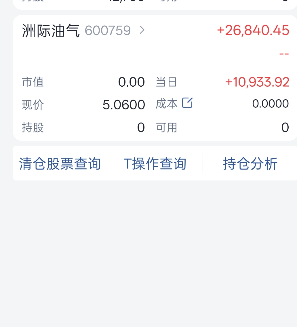 $洲际油气(SH600759)$ 昨天下午2.40分左右买的,今早见好就收,前后总共花费30分钟。
