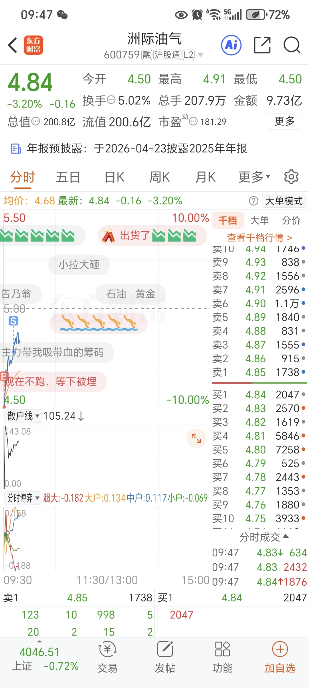 $洲际油气(SH600759)$ 我胆小4.78的时候就T出去了