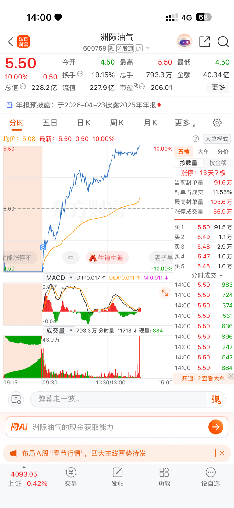 $洲际油气(SH600759)$ 唉,谁有我难受,早上没来得及撤