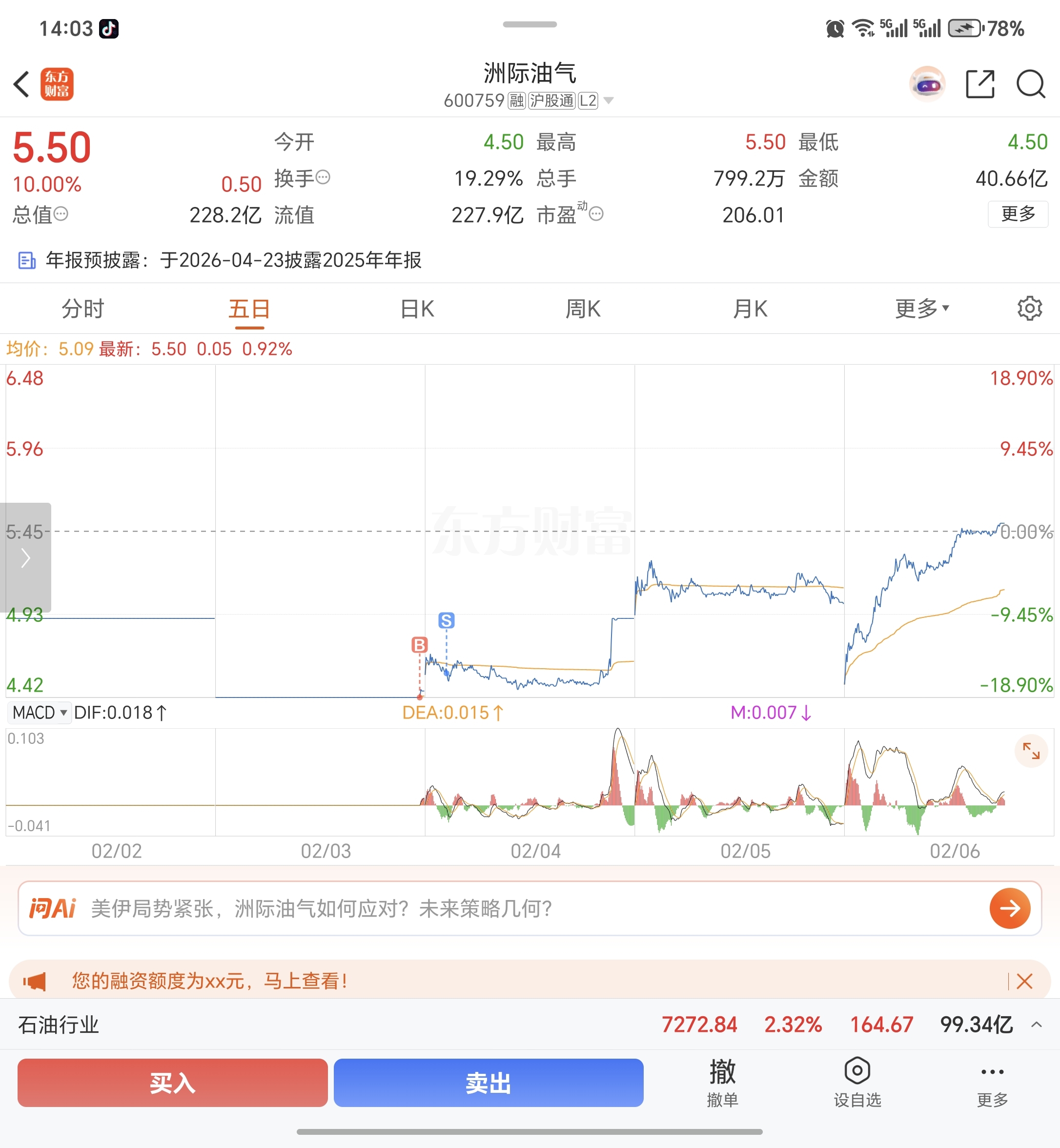 $洲际油气(SH600759)$ 破防了,破大防了