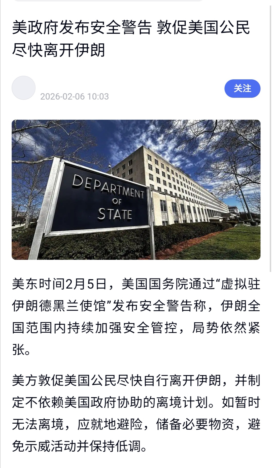 2、美政府发布安全警告 敦促美国公民尽快离开伊朗!