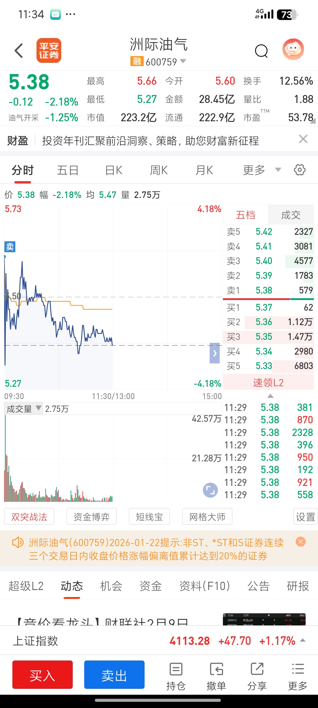 $洲际油气(SH600759)$ 这种周末预期没了开盘就得跑,即使涨停也不是认知内能赚的钱,还好高开了,昨天我就挂跌停价了