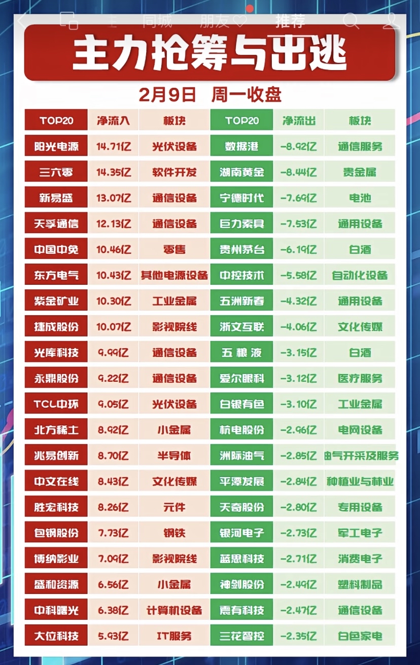 今日主力出逃前20