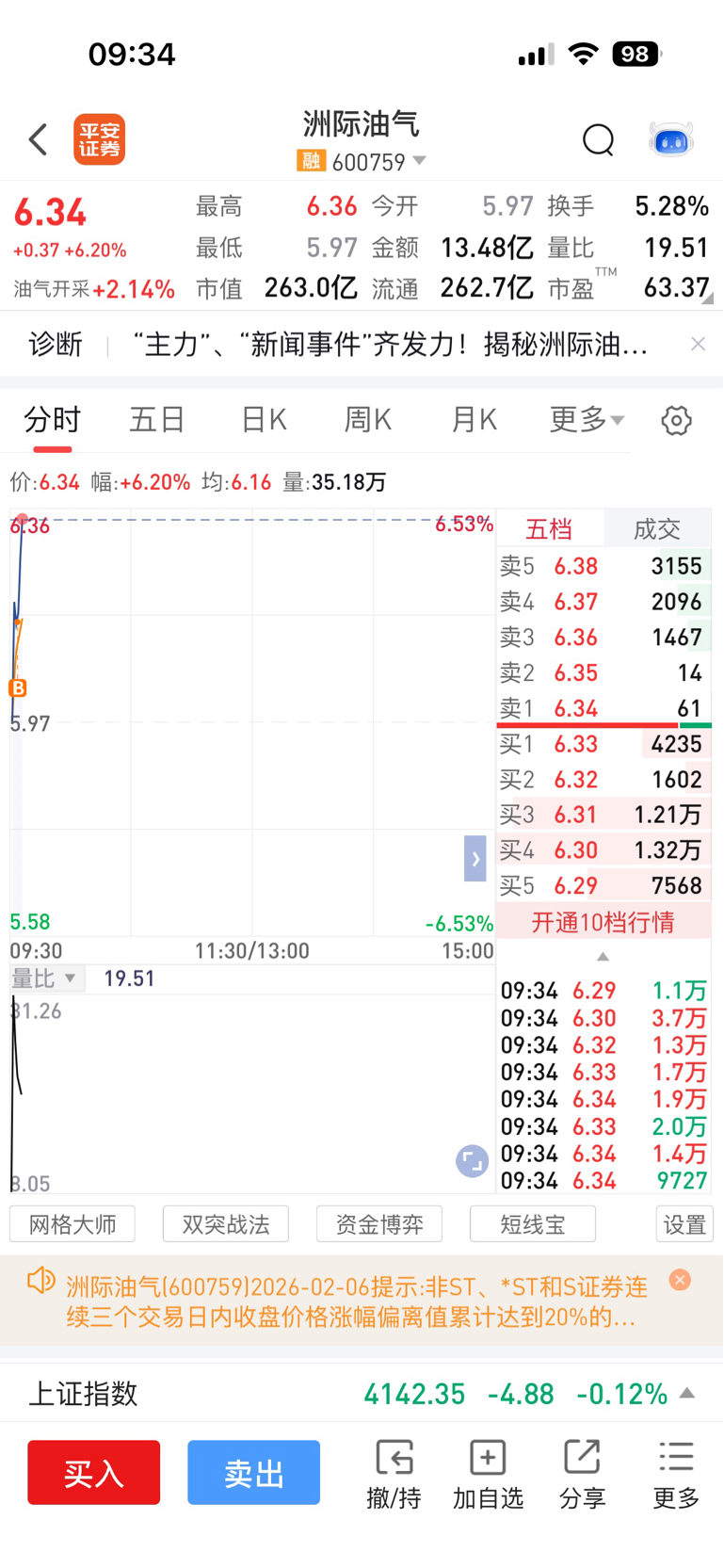 今日介入: $洲际油气(SH600759)$