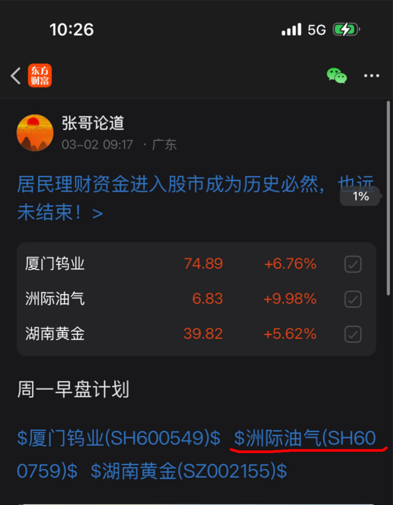 $洲际油气(SH600759)$ 今日成功拿下一字板主升浪根本停不下来盈利摆在这里我的实力毋庸置疑一句话这么说的机会都是留给有准备的人所以你今日吃到肉了吗