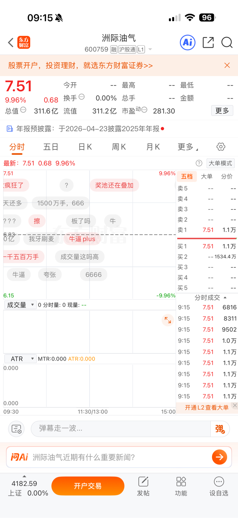早上9.15分,1500多万手封单,很多都是看到封单太多实在没希望买入,才撤单把资金转移到别的赛道!这百亿封单,空狗还在那里叫什么叫!已经上车的朋友坐好扶稳,这才是刚刚开始!还有多少个连板自己意yin一下