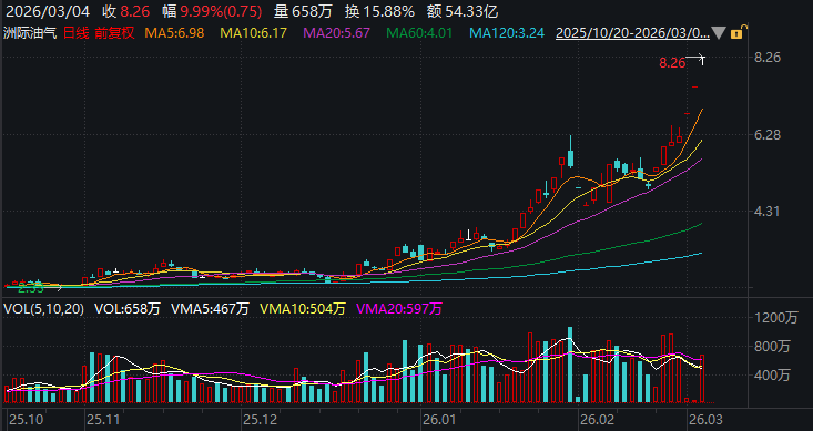 3月4日晚间,洲际油气(600759)发布公告,提示多项投资风险。当天,公司股价再次涨停,已经连续收获3个涨停板,近7个交易日收获5个涨停板。