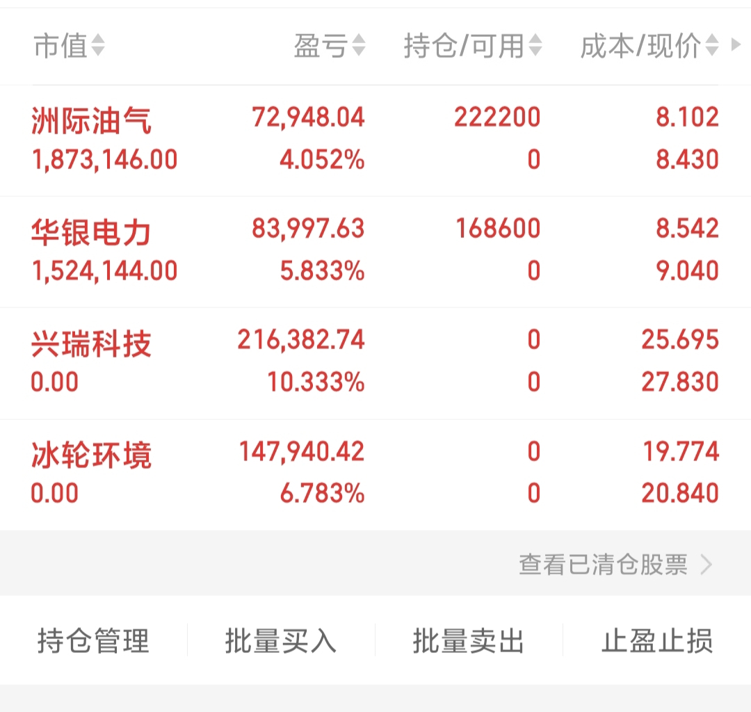 持仓介入$洲际油气(SH600759)$ $华银电力(SH600744)$