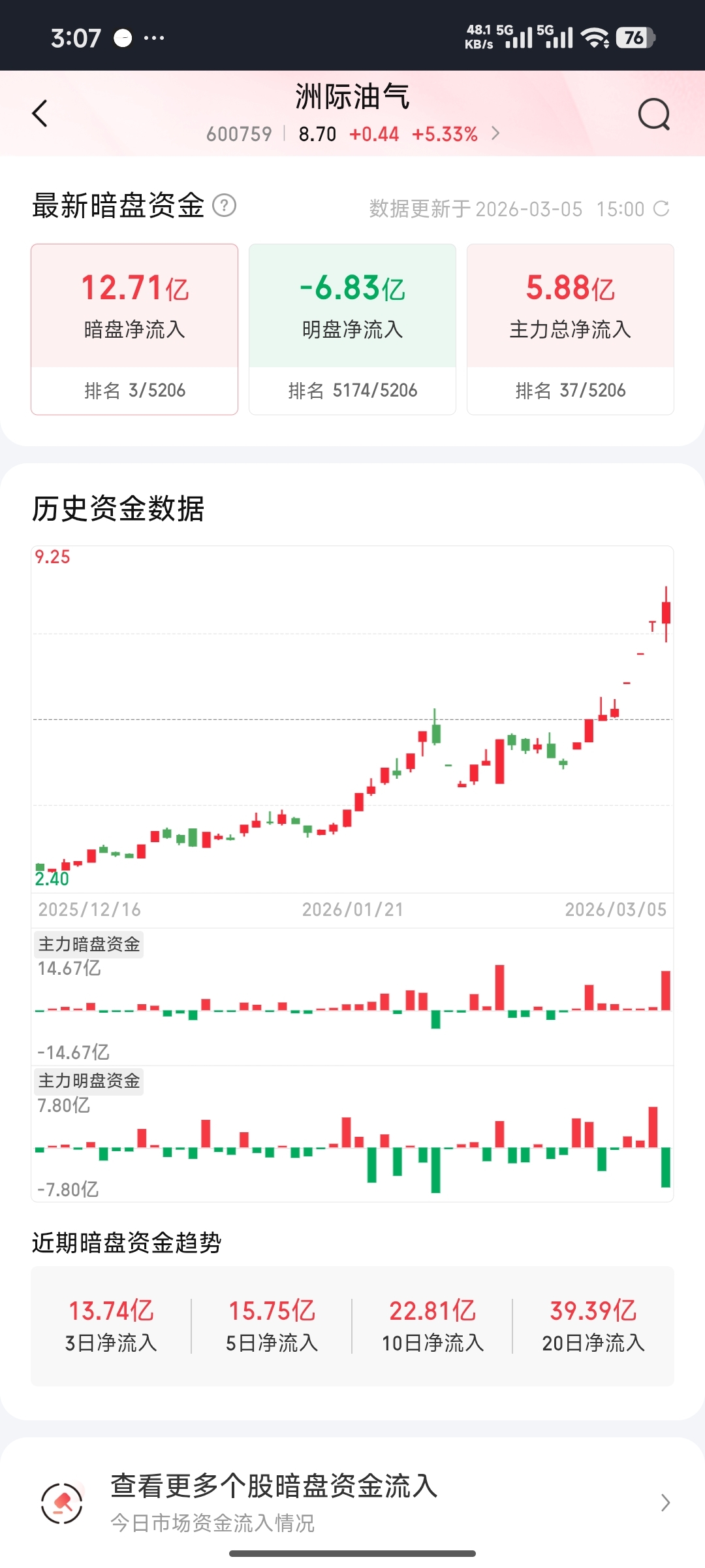 $洲际油气(SH600759)$ 都把嘴闭上,暗盘流入12个亿。
