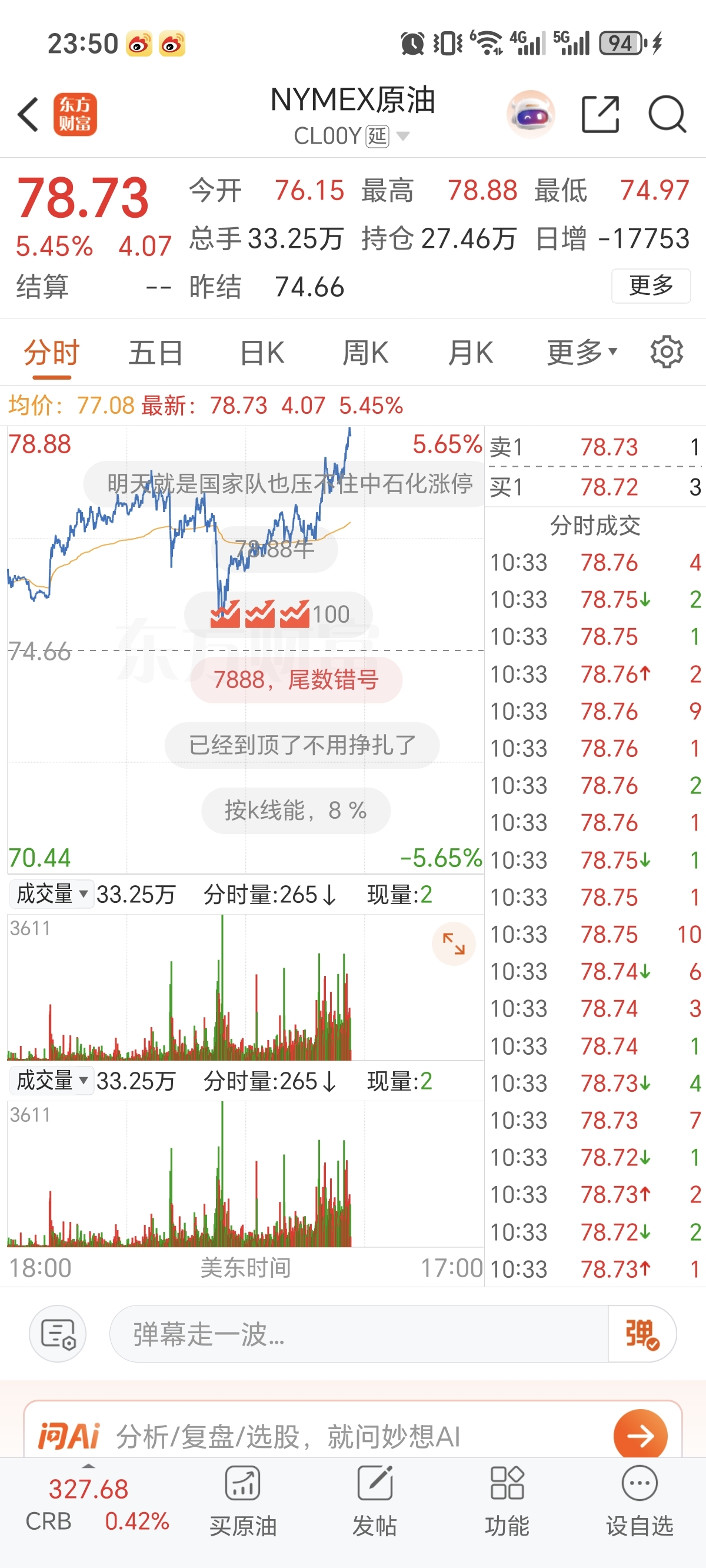 空勾们哭吧,原油起飞,哈哈哈!