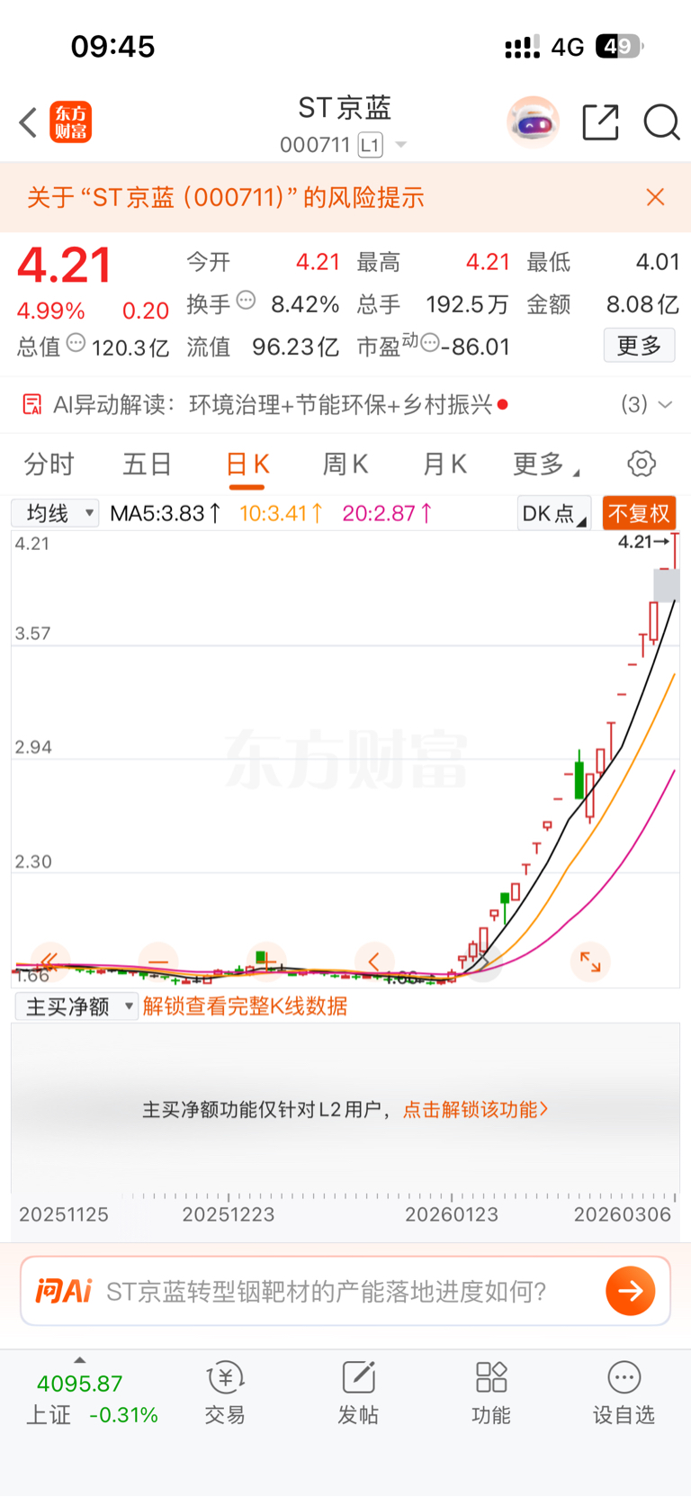 温馨提示: 1.根据《证券法》规定,禁止编造、传播虚假信息或者误导性信息,扰乱证券市场;2.用户在本社区发表的所有资料、言论等仅代表个人观点,与本网站立场无关,不对您构成任何投资建议。用户应基于自己的独立判断,自行决定证券投资并承担相应风险。《东方财富社区管理规定》