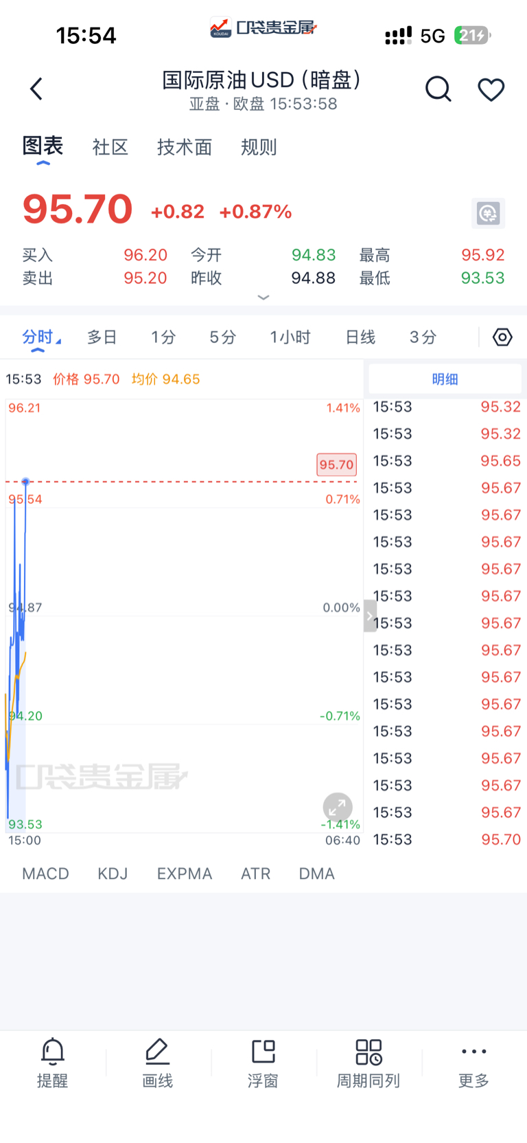 暗盘和现原油价格
