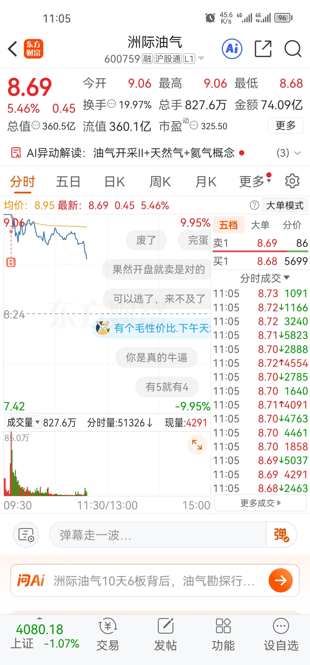 $洲际油气(SH600759)$ 兄弟们对不起,被我打下来了,我只要进热门题材肯定跌的